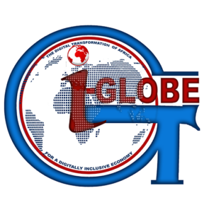 - The Globe in the Background: The central element of the logo is a stylized world map, emphasizing I-GLOBE’s international perspective while focusing on Africa’s digital transformation. It reflects the organization’s vision of using global digital trends to impact local economies and reshape communities.